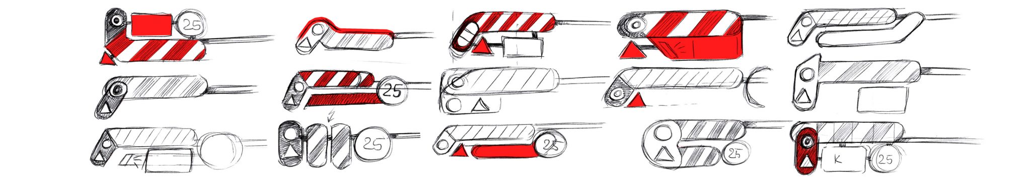 In weiteren Iterationsprozessen wurde die horizontale Ausrichtung als Basis gesetzt, da sich der Träger so von den üblicherweise quadratischen Signaltafeln abhebt und sich durch die ruhige Erscheinung, harmonisch an alle Landmaschinen anpasst.