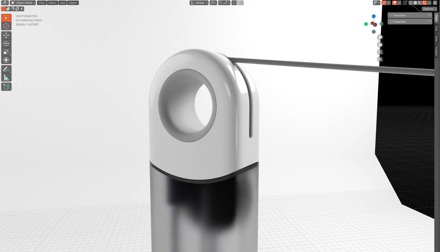 Das 3D-Modell wird in Blender in einer schlichten Studioumgebung platziert. Es werden Materialien zugewiesen und das Licht strategisch ausgerichtet, um das Produkt minimalistisch und eindrucksvoll zu präsentieren. Im abschließenden Schritt werden die Renderings für Präsentationen und Werbezwecke optimiert und bearbeitet, um eine überzeugende visuelle Darstellung zu erzielen.