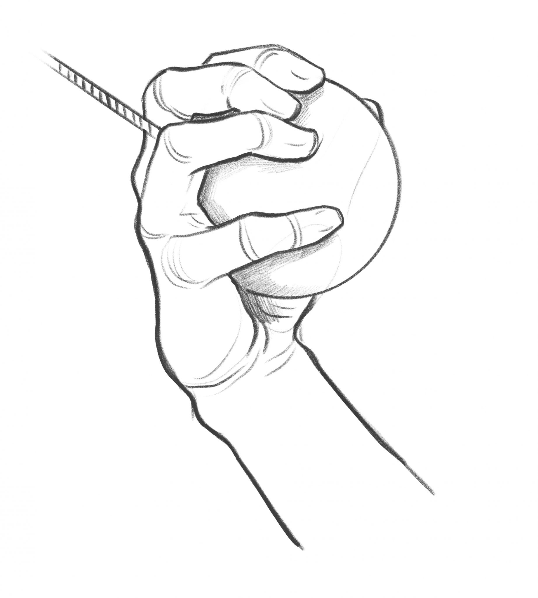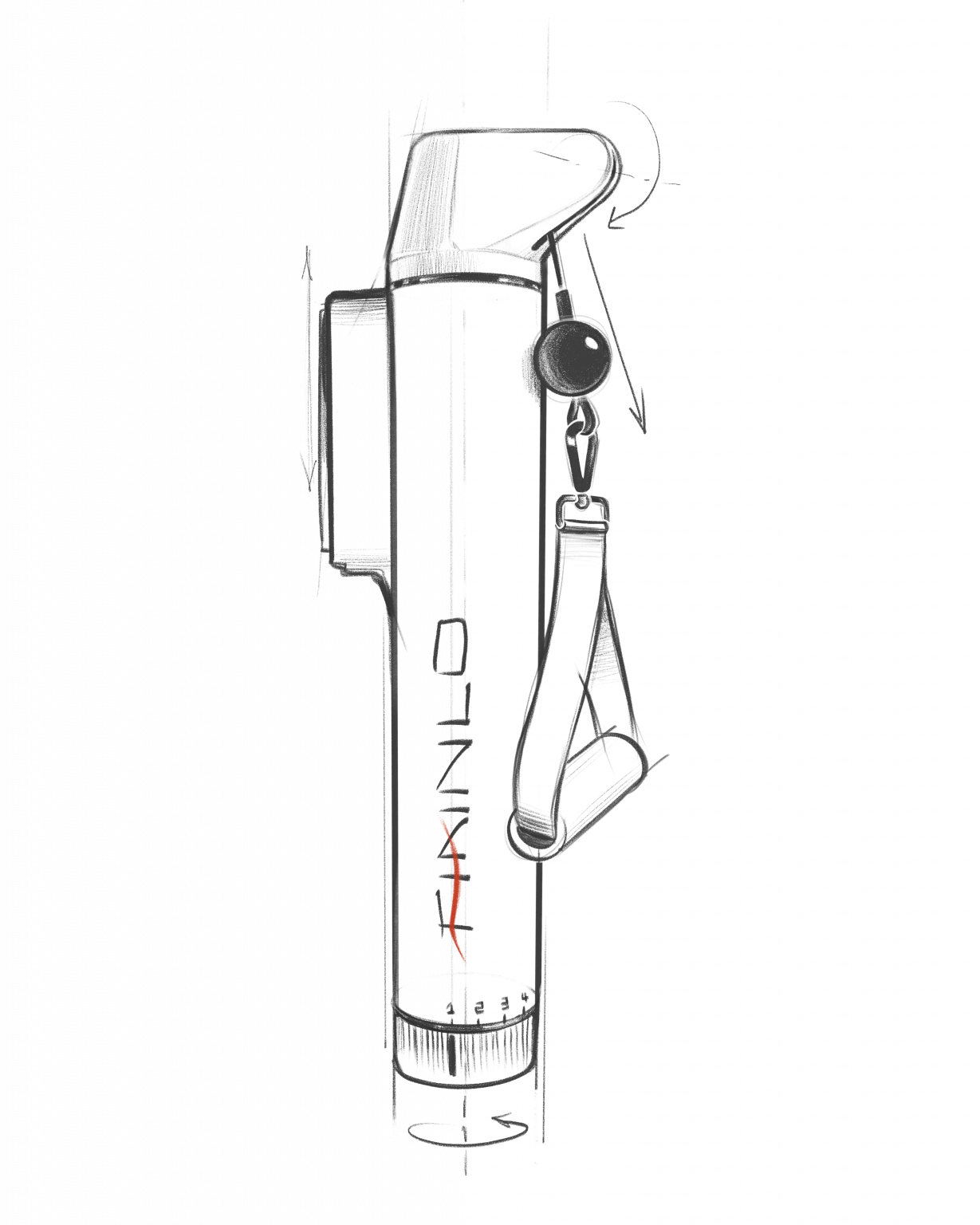 Es wurden ebenfalls einige Griffkonzepte erarbeitet. Eines der Griffentwürfe basiert auf einer kugelförmigen Gestaltung, die insbesondere Anfängern den Einstieg ins Training erleichtern soll. Durch die spielerische Form wird der Griff intuitiv in die Hand genommen, wodurch die Hemmschwelle zum Training gesenkt wird. Nach der Trainingseinheit kann der Ballgriff entweder in die Öffnung des Gerätekörpers eingesetzt oder am Gerät baumeln gelassen werden.
