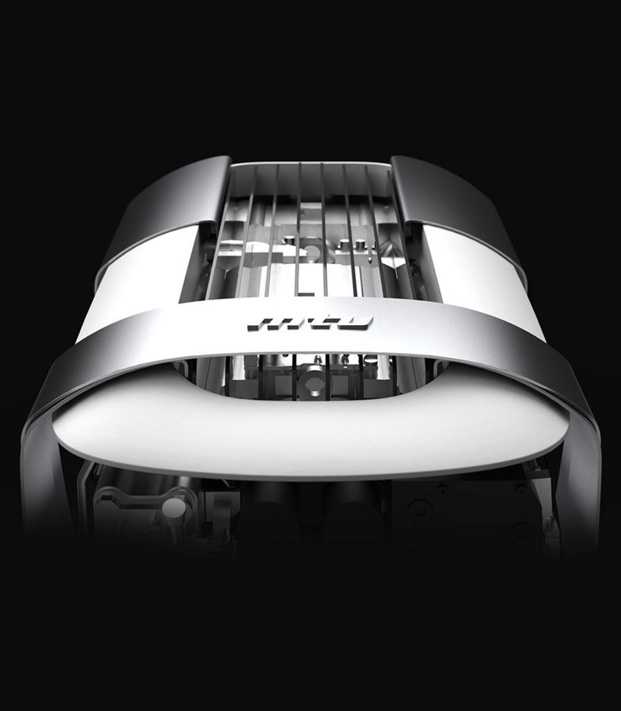 Die Lamellen auf der Oberseite des Motors sind inspiriert von den Barten des Bartenwals und veranschaulichen Linearität, Effizienz und Reinheit. Gleichzeitig erfüllen sie praktische Funktionen: Während die oben laufenden Kabel und Schläuche zwar optisch verdeckt sind, bleiben sie uneingeschränkt erreichbar. Auch die Wärmeabführung und Luftzirkulation am Motor wird nicht verhindert.