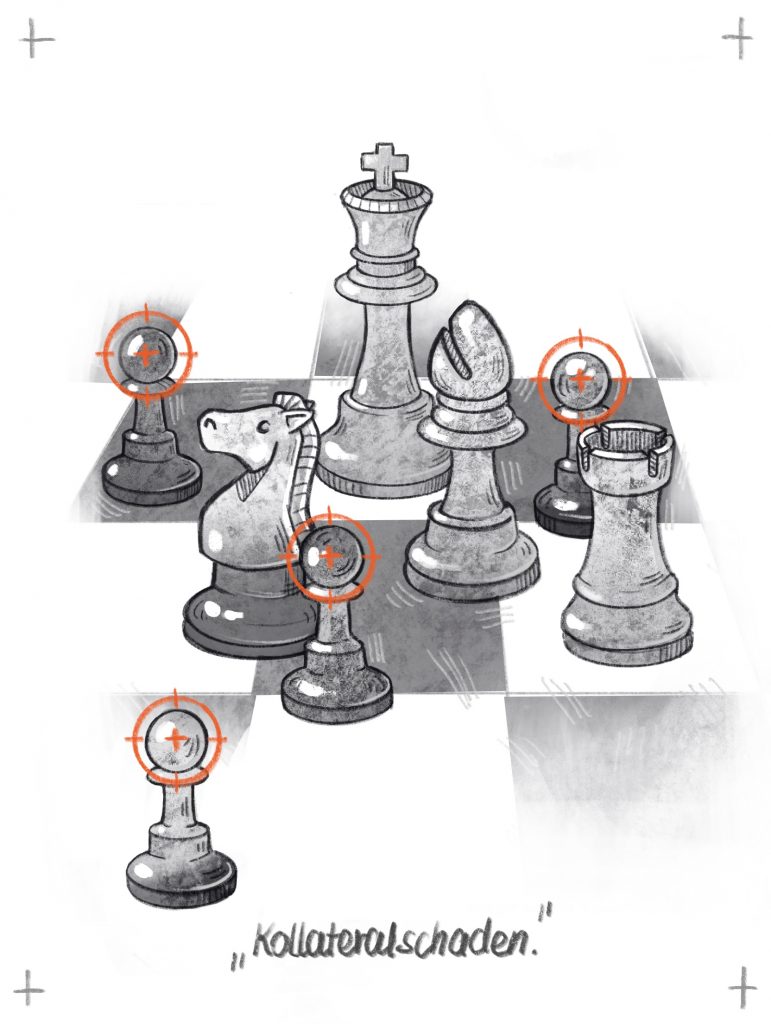 Übertragen auf das Schach vermenschlichen die Abdrücke die jeweiligen Figuren. So sieht man diese nicht mehr nur als z.B. entbehrlichen Bauern, sondern als wertvolles Individuum.